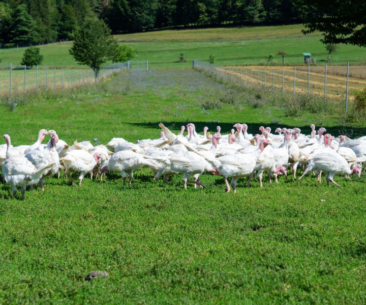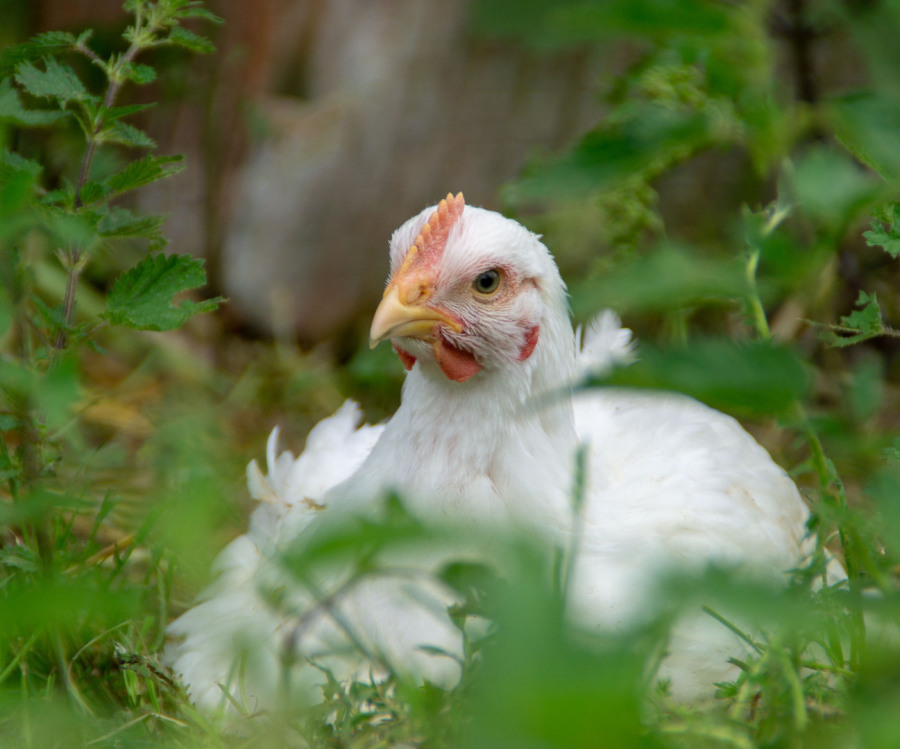 Seit Anfang Mai 2019 wohnen ca. hundertfünzig Hähnchen auf dem Hof. Wenige Tage alt dürfen sie nun drei Monate bei uns in Bio-Aufzucht leben und aufwachsen. Im Gegensatz zur konventionellen Haltung dürfen die Hähnchen, sobald sie größer sind Freilauf genießen. Jedem Hähnchen stehen 4qm zur Verfügung.